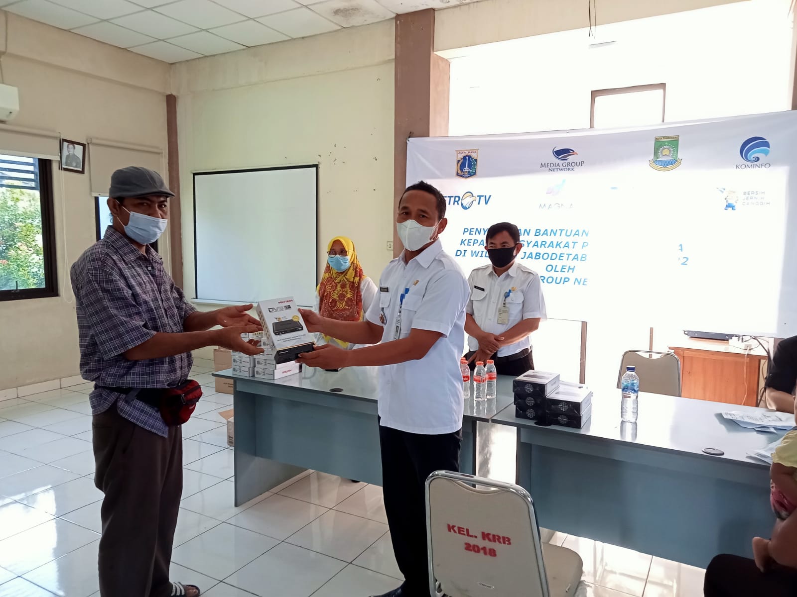 Lurah Karawaci Baru Bpk Sech Muhammad Rasad membagikan Set Top Box di Aula Kantor Kelurahan Karawaci Baru, kegitaan ini dihadiri oleh Sekretaris Kelurahan Bpk Emus Mustajid dan Kasi Kemasyarakatan Hj Lilis Jaliyati